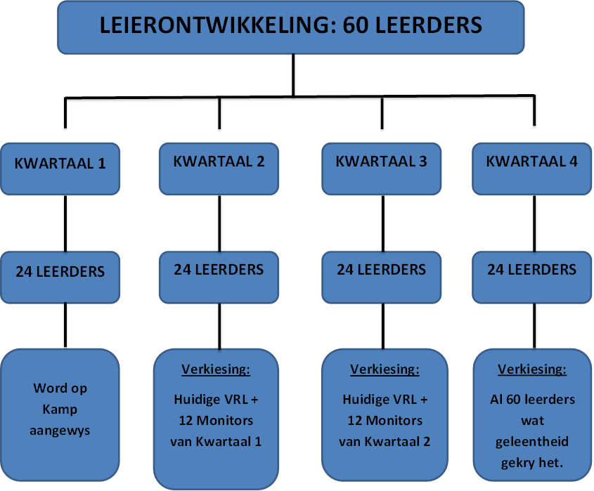 In die Laerskool Brackenfell streef ons daarna om bogenoemde twee aspekte aan soveel as moontlik leiers bekend te stel. Hieronder volg ‘n uiteensetting van ons leerderraadstelsel:
